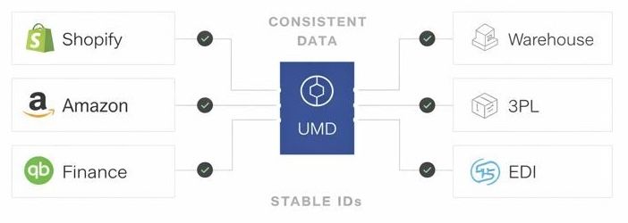 UMD solves this by defining, governing, and maintaining your core data model for every business entity—customers, vendors, products, SKUs, channels, locations, and more. It sits alongside your system of record and creates one authoritative set of definitions and IDs that keeps every workflow and system aligned, delivering: