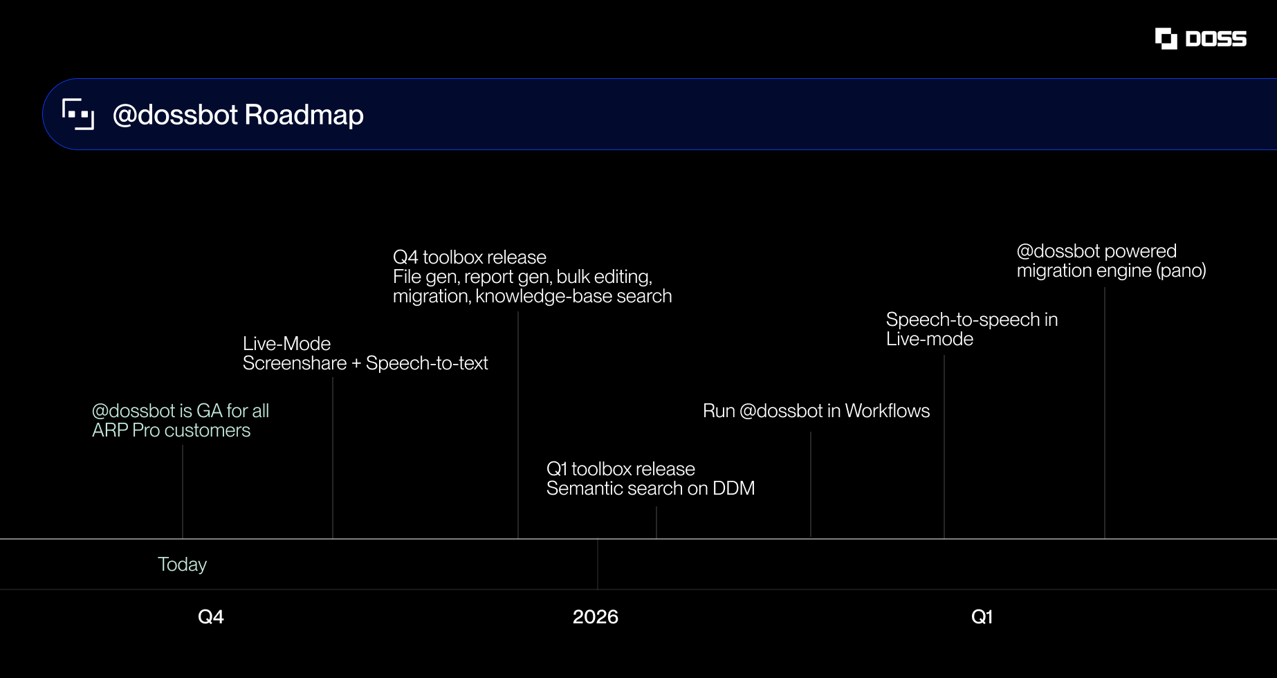 For those who were there or watched the on-demand recording , you saw the promise. Today, we’re delivering on it: dossbot is now Generally Available (GA) for all ARP Pro Customers.