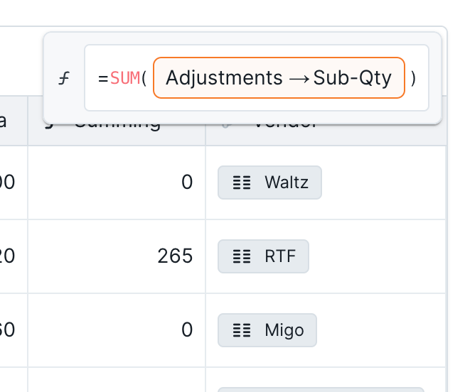 Our advanced formulas feature allows you to build complex calculations similar to Excel, but with the added capability of querying your data. Familiar Excel-ish functions but with the power SQL-ish querying and foreign key relationships (in DOSS we call these Lookups)